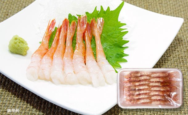 頭付きのまま、殻をむいているので、手間なくそのままお刺身や海鮮丼、カルパッチョにお使いいただけます。
