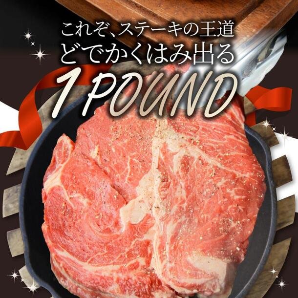 「厚切り牛肩ロース 1ポンドステーキ スパイシーガーリックオイルソース漬け」450g