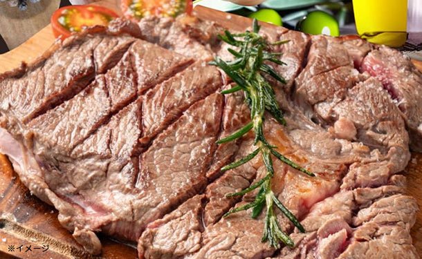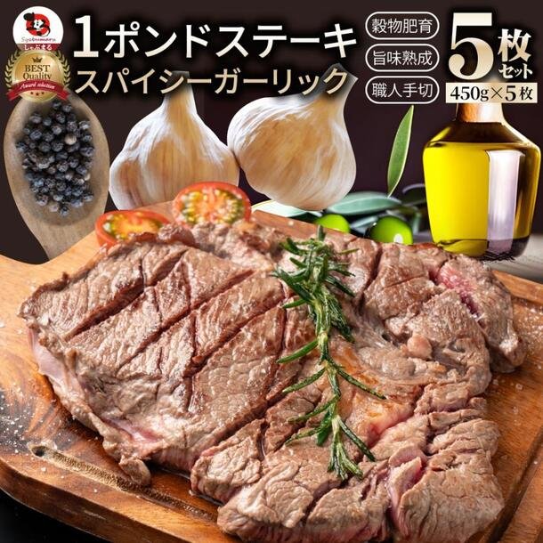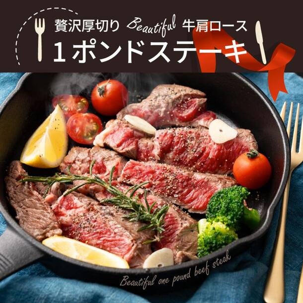 「厚切り牛肩ロース 1ポンドステーキ スパイシーガーリックオイルソース漬け」450g