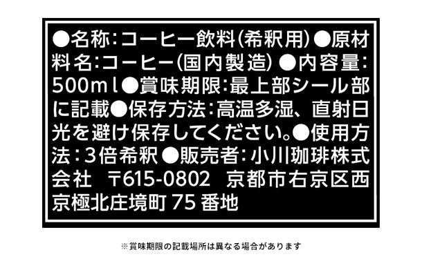 小川珈琲「炭焼珈琲カフェオレベース 無糖」500ml