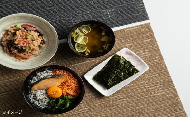 かつお節は鰹節の中でも高級品と位置付けられる鹿児島県産の本枯れ節を使用。また、お吸い物には、高級食材のあわびと松茸を使用しました。
