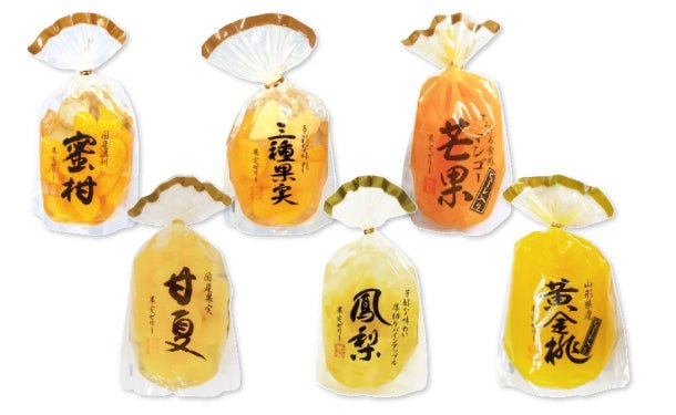 厳選果実ゼリー高級菓子店のゼリーを手がける「サンヨー堂」の商品で新鮮な厳選果実をたっぷり使用。