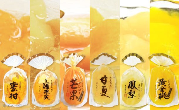 厳選果実ゼリー高級菓子店のゼリーを手がける「サンヨー堂」の商品で新鮮な厳選果実をたっぷり使用。