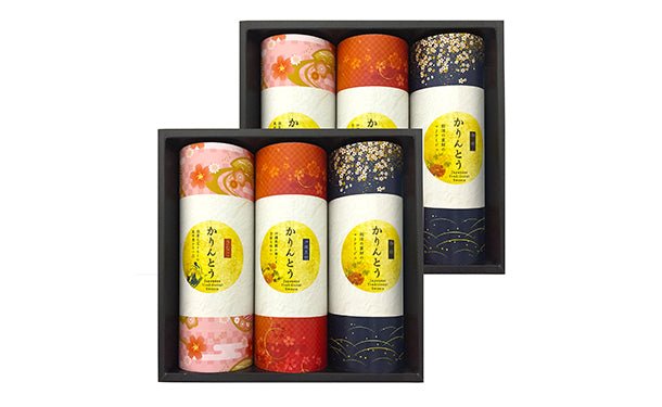 沖縄産の黒糖を使用した黒糖の風味が口に広がる、ツヤが美しい沖縄黒糖かりんとうと、 国産きなこをまぶし甘さを抑え少し塩味に仕上げた懐かしい味のきなこかりんとう、珈琲の香ばしさが甘みを引き立てる大人味の珈琲かりんとうの詰合せ。