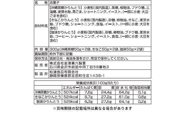 沖縄黒糖かりんとう、きなこかりんとう、珈琲かりんとうの詰合せ。