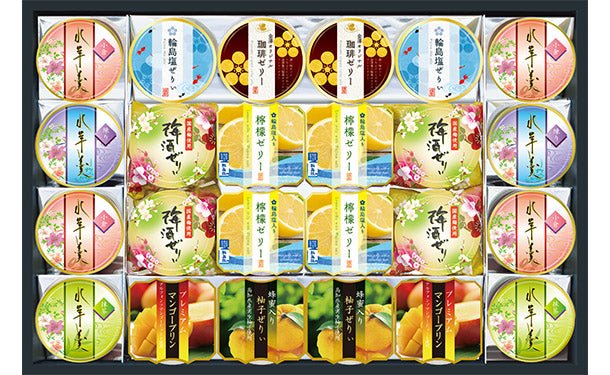 水ようかん、梅酒ゼリー、柚子蜂蜜ゼリーなどほっこり和を感じる素材を中心に詰合せたデザートギフトです。