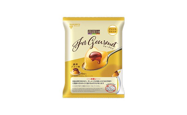 カスタードとカラメルの絶妙なバランスにこだわり、弾力のある蒟蒻畑にピッタリなコクのあるクリーミーな味わいのプリン味に仕上げました。