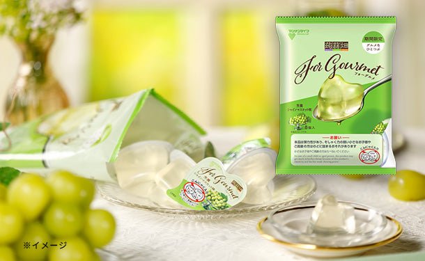 フタを開けた時に広がるシャインマスカットの華やかな香りと、摘みたての瑞々しさをひとつぶで感じる満足感のある味に仕上げました。