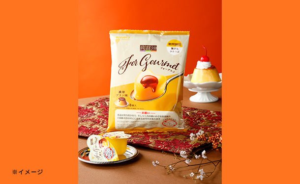 蒟蒻畑の特性から生まれる独特の食感は、プリン風味と相性抜群です。カスタードとカラメルの絶妙なバランスにこだわり、弾力のある蒟蒻畑にピッタリなコクのあるクリーミーな味わいのプリン味に仕上げました。