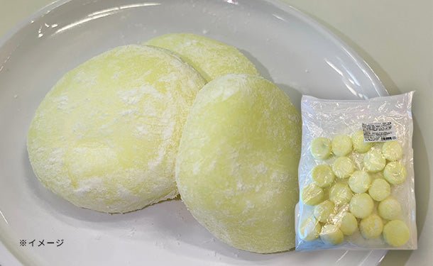 ゴールデンキウイ果肉入りのココナッツクリームをモチで包みました。