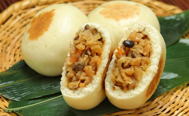 しめじ、椎茸とキャベツ、大根、人参などの野菜を大きめにカット。皮の内側に具のうまみを封じ込めた醤油味。