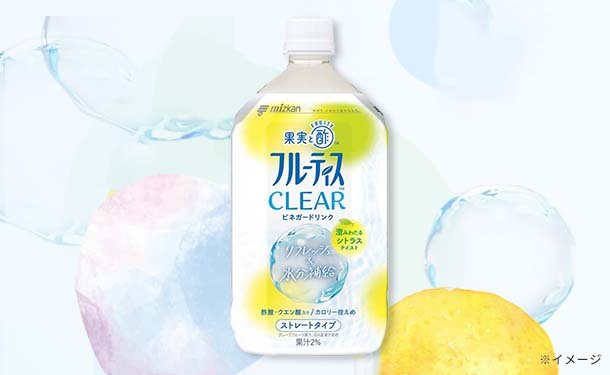 「フルーティスCLEAR」果汁とお酢を使用し、汗をかいた後の乾いたカラダにやさしくしみわたるシトラステイストのビネガードリンクです。カロリー控えめです。酢酸・クエン酸を含み、適度な酸味とクリアな後味で、ジョギングなどの軽い運動や、サウナ・岩盤浴で汗をかいた後の水分補給・リフレッシュにぴったりです。