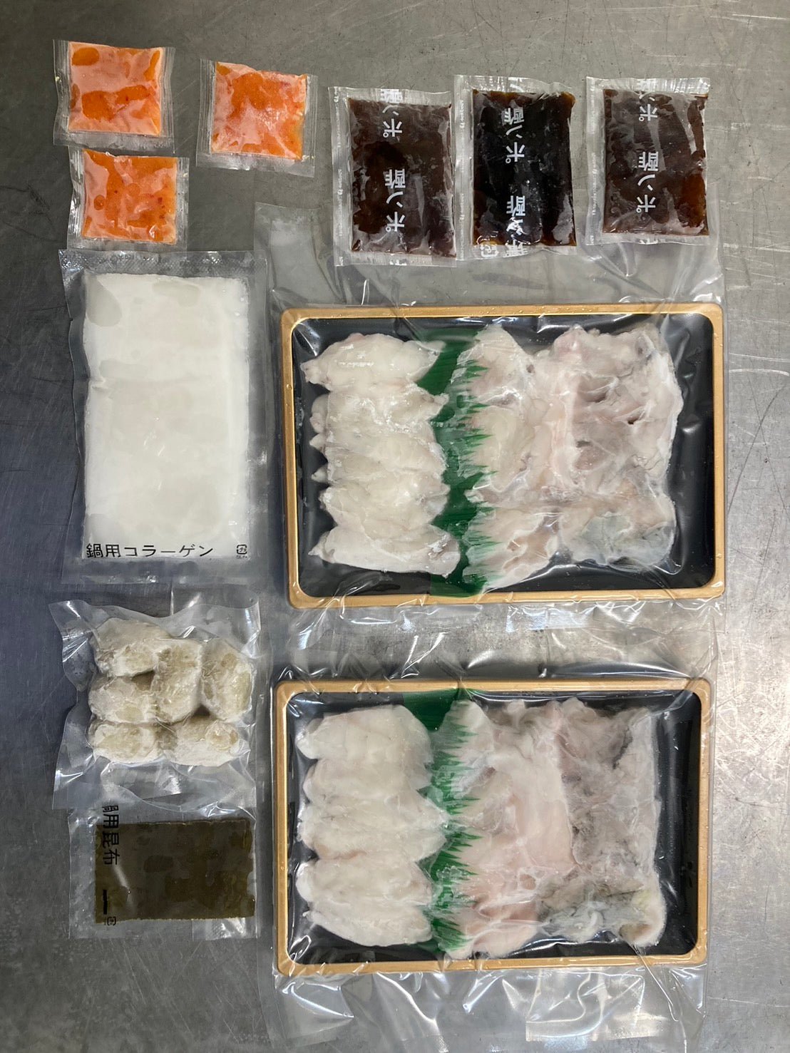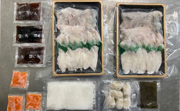 ふぐつみれやコラーゲンといった普段、目にすることの無い商品も入れており、新感覚で楽しんで頂けるセット内容となっております。