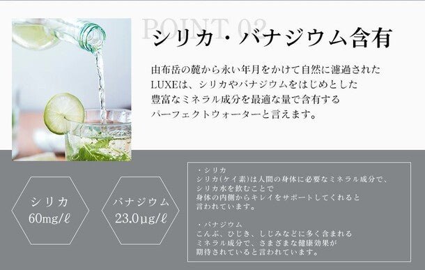 大分県産「シリカ天然水 LUXE(軟水)」550ml