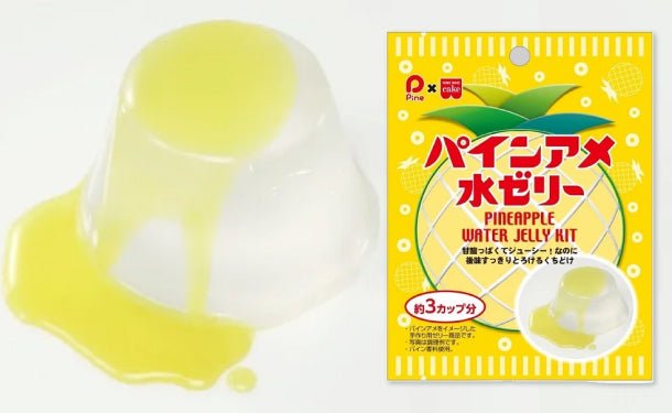 すうっととろけるくちどけに甘酸っぱいパインアメ風味のシロップが引き立つ爽やかなゼリーにしあがります。