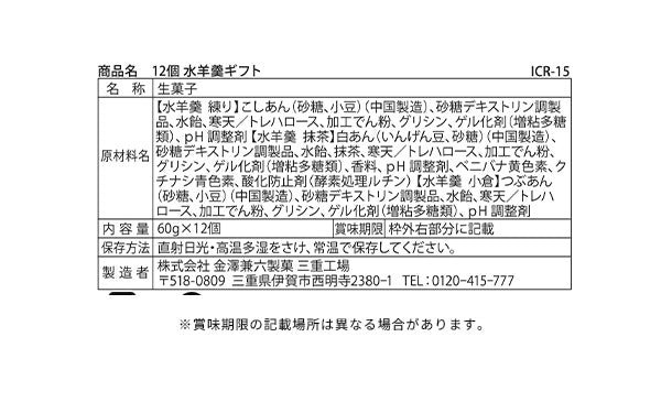 「水羊羹ギフト ICR-15」12個入り