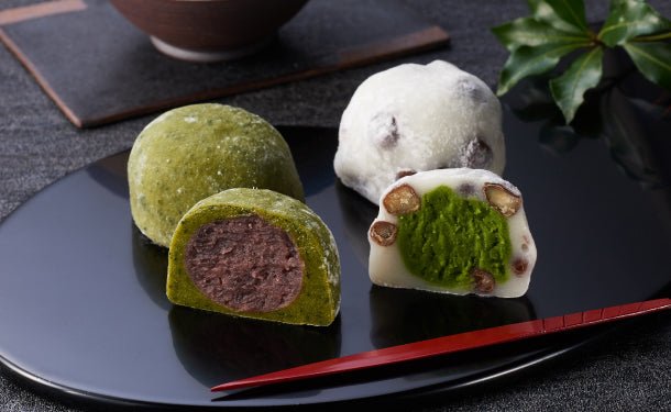 独自製法の風味高い抹茶餡に、ほんのり塩味の豆とやわらか餅。