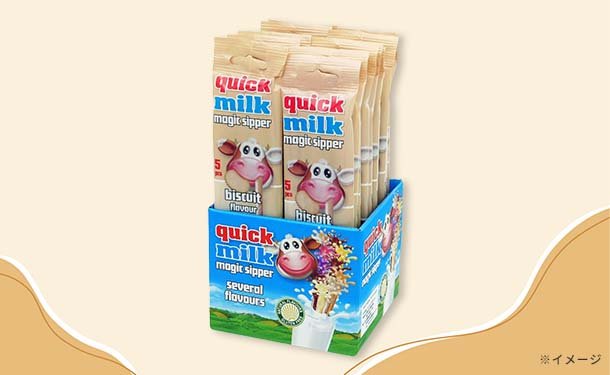 牛乳がビスケット味の牛乳に早変わり。愛称抜群の組み合わせをお楽しみください。