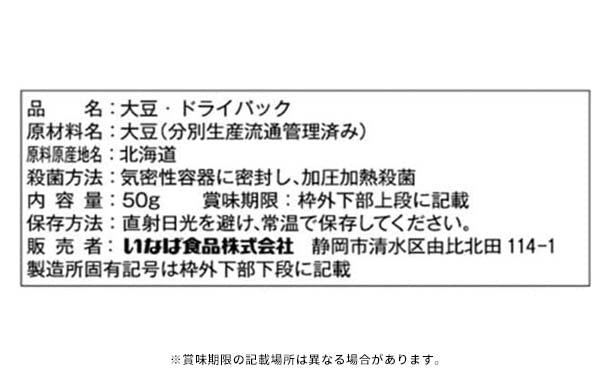 北海道産豆原料100%使用した大豆をホクホク食感のドライパックに仕上げました。