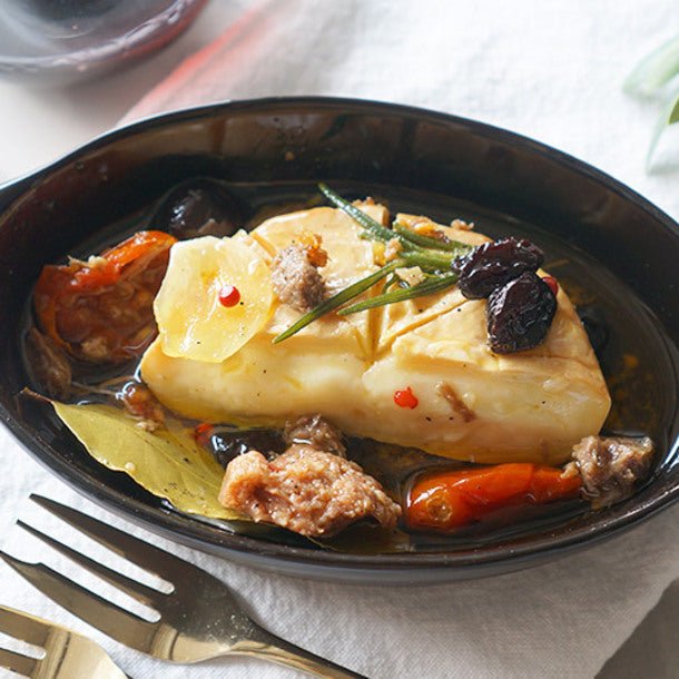 神戸牛を熟成させて野菜と煮込んだ贅沢なコンビーフと、スモークしたカマンベールのコンフィ(オイル煮)。 レーズン、トマト、ハーブ、ガーリックがふんだんに入っていて、封を開けると豊かな香りが食欲をそそります。