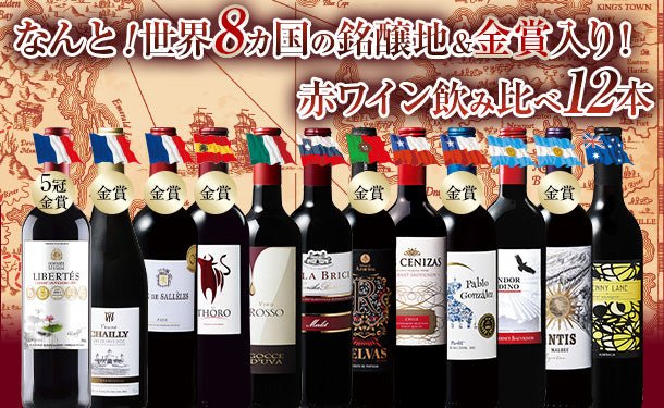 「金賞受賞含む!世界8ヵ国の銘醸地赤ワイン飲み比べセット」750ml