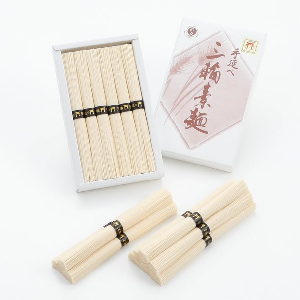 手延べ製法の基本を守り、厳選された小麦粉と塩を使い小麦の風味を生かした味わい深くコシのある素麺。 最もスタンダードで人気のある三輪素麺です。 上品かつ味わい深い三輪素麺ならではの風味をおたのしみください。