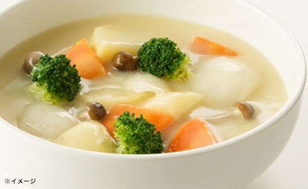 野菜がごろっとはいっているので、食べごたえもあります。乳製品を使わず、野菜がベースの体にやさしいホワイトシチューです。コレストロールゼロ。