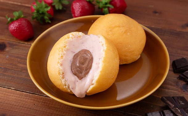 ストロベリークリームと濃厚なチョコクリームの2層仕立ての、季節限定くりーむパンが登場しました。