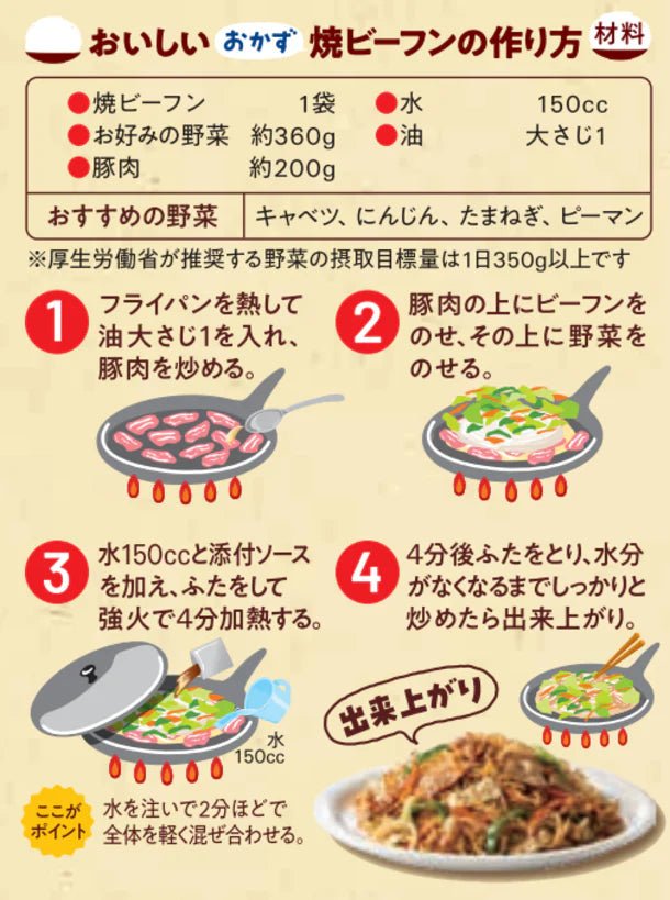 1食に必要な野菜をごはんと一緒においしく食べられるおかず専用焼きビーフン。