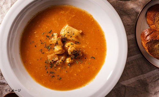 約30年間和食やイタリアンなど幅広いジャンルの料理を得意としてきたシェフが開発を担当し、トマトそのものの美味しさを最大限にいかしました。具材の野菜、トリッパ、もち麦はそれぞれ違う食感を楽しめて、満足感があります。
