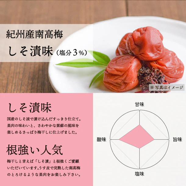「減塩 紀州産南高梅 つぶれ梅 しそ漬味梅干し 塩分 3%」300g