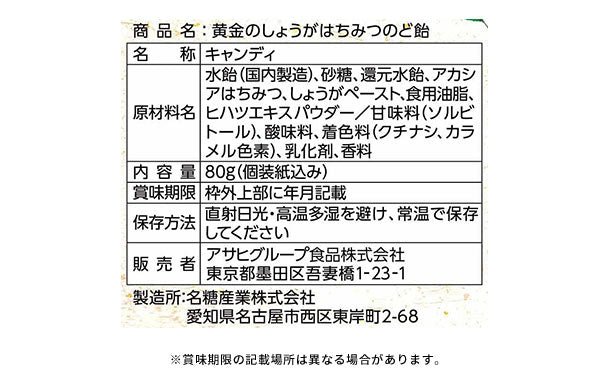 アサヒグループ食品「黄金のしょうがはちみつのど飴」80g
