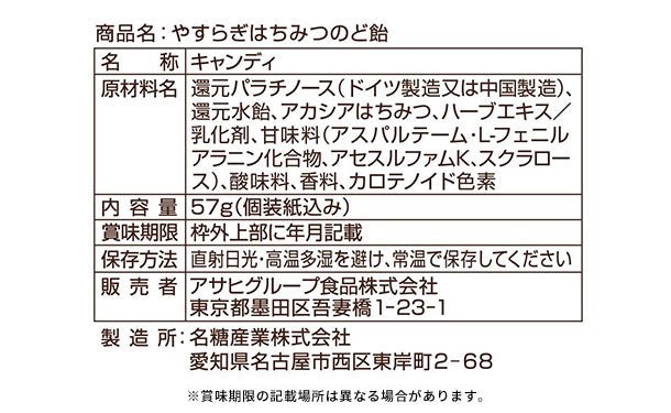 アサヒグループ食品「やすらぎはちみつのど飴」57g