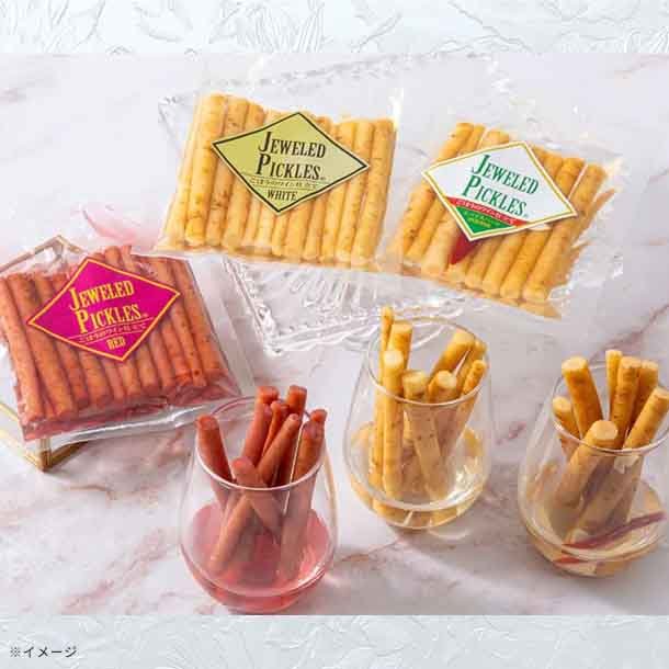 赤ワイン仕立て、白ワイン仕立て、スパイスハーブのセットです。それぞれが独自の個性を持ち、魅力に満ちた商品です。本日のお楽しみは、何にしようかな?お客様のその日の気分に合わせて、味を選び、心ゆくまでお楽しみいただけます。ぜひお試しください。ジュエルドピクルスの世界を存分にお楽しみください。 大人が選ぶスタイリッシュなヘルシーなおつまみ。