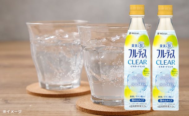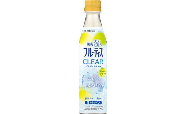 果実とお酢であなたらしい健やかな暮らしを彩るブランド「フルーティス」から発売の新商品「フルーティスCLEAR」果汁とお酢を使用し、汗をかいた後の乾いたカラダにやさしくしみわたるシトラステイストのビネガードリンクです。 4倍希釈時カロリー控えめです。