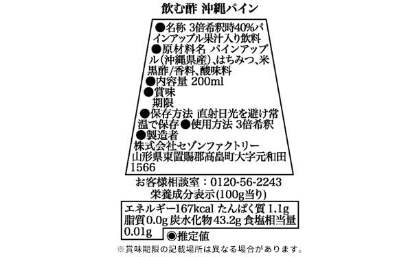 沖縄県産パインアップルの甘みを黒酢の酸味で引き立て、バランスよく仕上げました。甘くてジューシーな飲む酢。炭酸割りや牛乳割りがおすすめです。