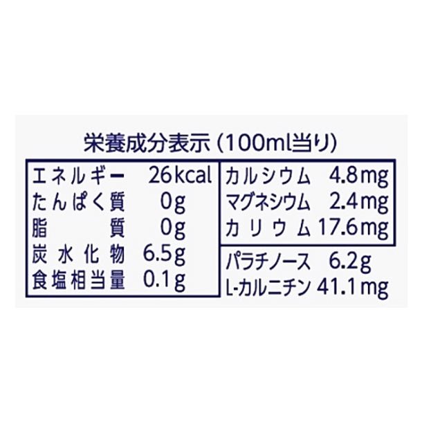 持続性エネルギー源(パラチノース)、エネルギー生産サポート成分(L-カルニチン)を配合しているため、持久力をサポートし、水分補給に適した飲料です。