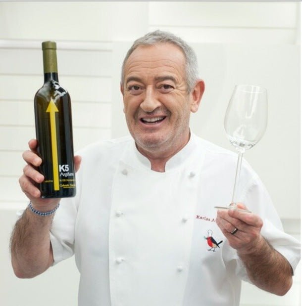 「チャコリ・K5 アルギニャーノ 2020」は、美食のために造られた極上の白ワイン。バスク地方を代表するシェフ、カルロス・アルギニャーノ氏がプロデュースし、デザインは斬新なククシュムシュによるもの。醸造は地元バスクの名匠ローレン・ロシーリョ氏が手掛けています。まさにオールスターが集結した一品で、世界のミシュラン星付きレストランでも提供されるほどの高品質です。