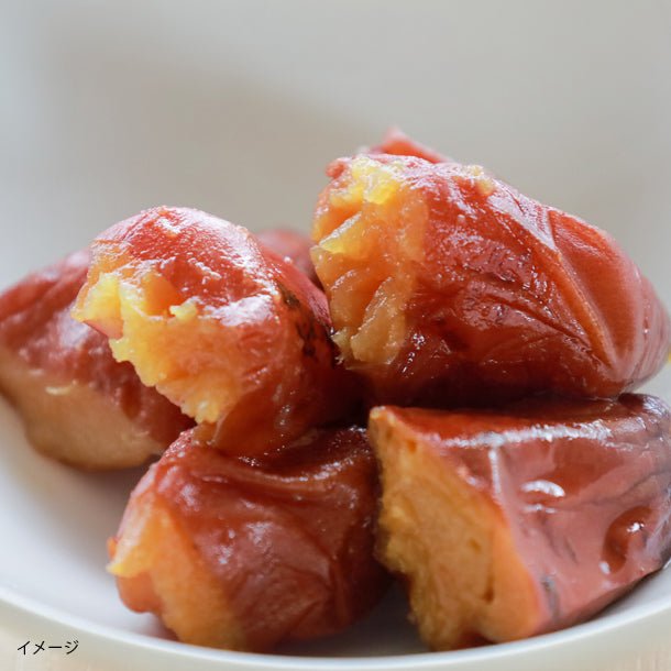 クラダシでも人気のレトルト惣菜、「uchipac」を製造している有限会社ウチノ様と協業して商品化しました。サイズが小さくて規格外のために販売できなくなった冷凍焼き芋が、一口サイズの常温商品に生まれ変わりました。焼き芋を再度加熱したことで、紅はるか本来の持つ甘みが凝縮されているほか、食感ももっちりしていておいしいです。飽きずに食べ続けることのできるシンプルな味わいです。