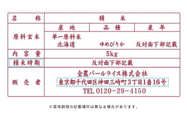 全農パールライス「無洗米北海道産ゆめぴりか」5kg