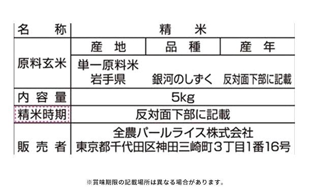全農パールライス「岩手県産銀河のしずく」5kg