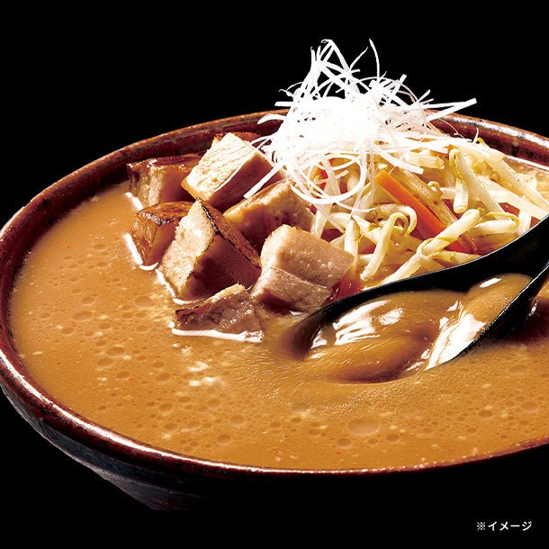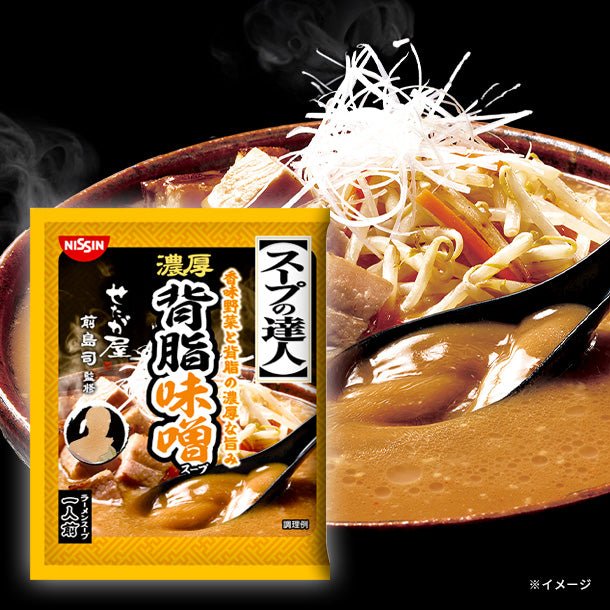 濃厚な豚骨をベースに2種の味噌と香味野菜の旨みを合わせ、たっぷりの背脂を加えた濃厚で深みのある味噌スープです。「せたが屋」店主監修。
