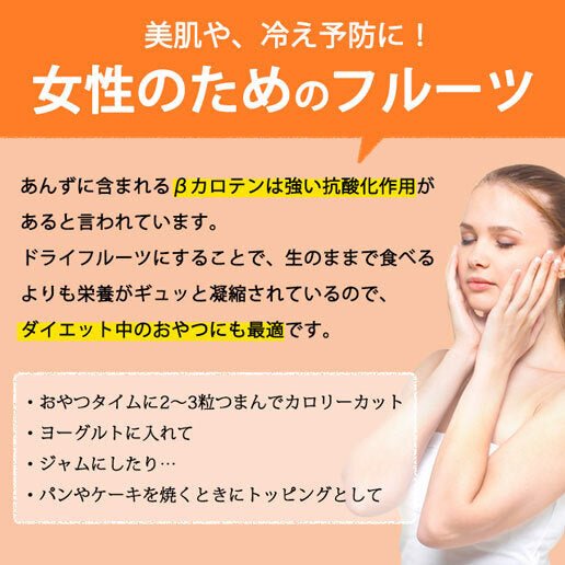 あんずにはβカロチンが含まれており、肌の老化や冷え性改善にも期待できます。