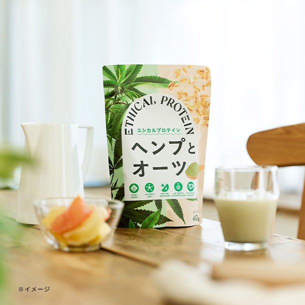 「エシカルプロテイン_ヘンプとオーツ」は、ヘンプシード(麻の実)とオートミール(オーツ麦)を、9:1でミックスしたプロテインです。