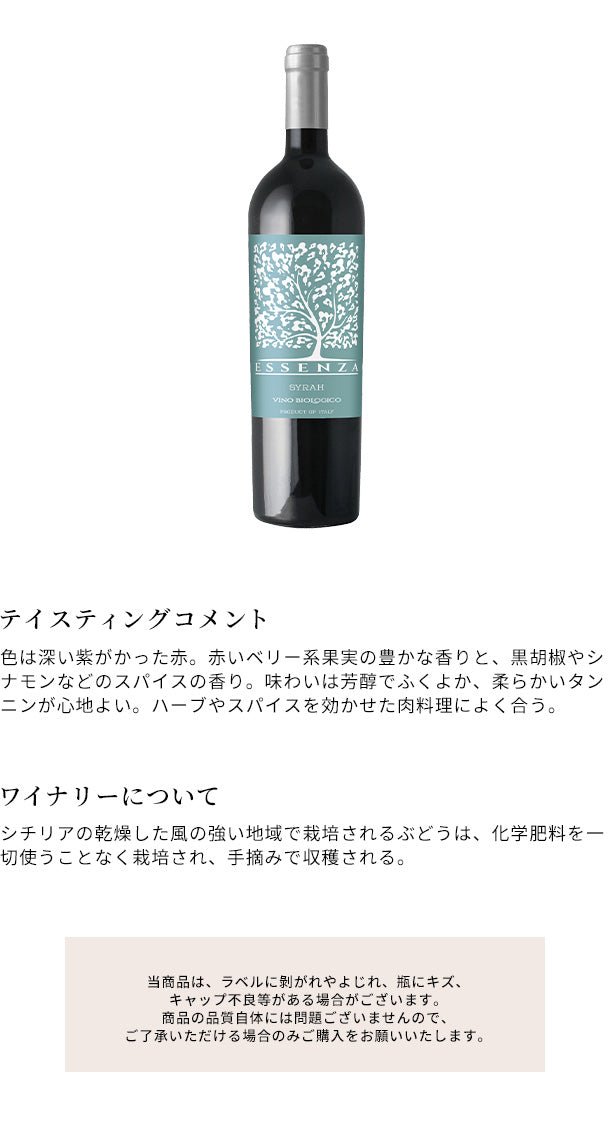 イタリア産 赤「エッセンツァ・シラー」750ml