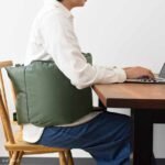Lサイズは抱き枕やうつ伏せ用のマットとしてそのまま使うだけでなく、折り曲げて腰掛けや正座の補助としても。さらに、バックルを前に留めれば腰当てや肘掛けとして、後ろに留めれば前傾姿勢のサポートとしても使えるなど、さまざまな使い方で愉しむことができます。