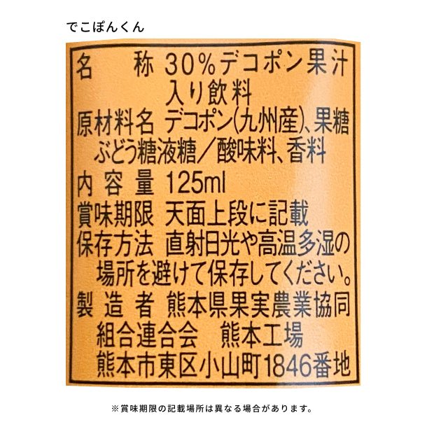 九州産デコポン果汁を30%使用し、さわやかな果実感と果肉の甘みを楽しめる「でこぽんくん」と九州産の温州みかんを果汁50%使用し、さわやかで、スッキリと仕上げた「みかんちゃん」の詰め合わせです。