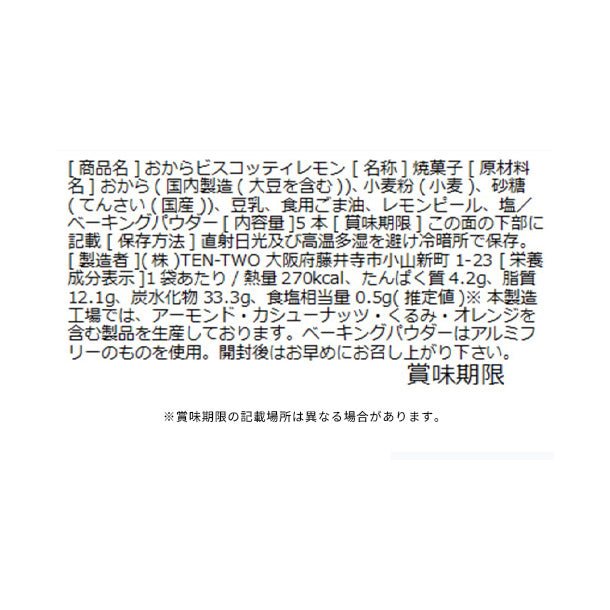 レモン好きにはたまらない逸品です。一度開封しますとおからの性質上、湿気などの水分を吸収します。 防腐剤等を一切使用していない為、開封後は密閉容器に保存頂き、賞味期限に関係なく3~4日を目安になるべくお早めにお召し上がり下さい。