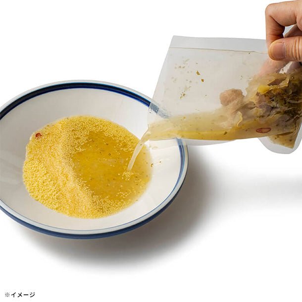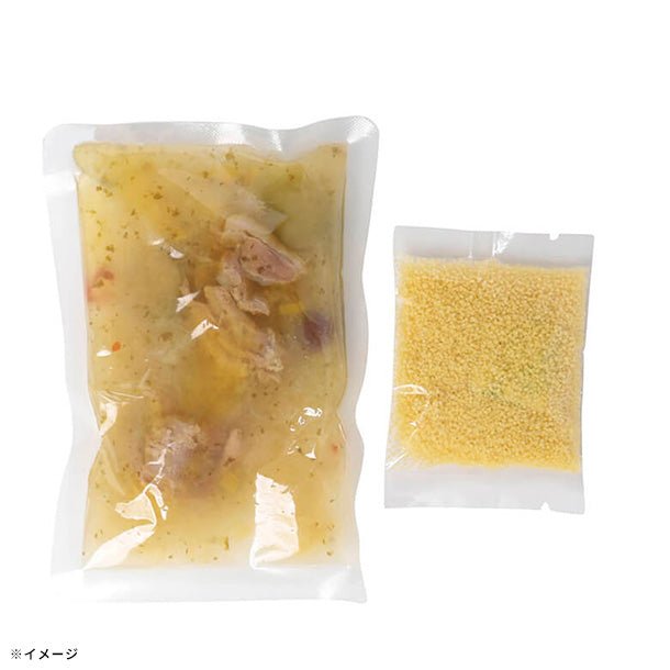 ※パッケージ写真は、盛り付け例です。スープとクスクスのみのお届けとなります。