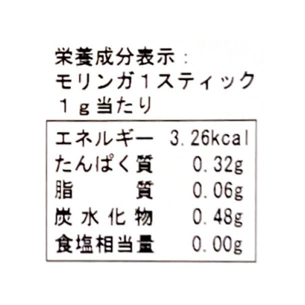 モリンガ青汁100gと比較(※1)すると 【たんぱく質】卵の2.6倍 【食物繊維】ごぼうの3.5倍【ビタミンB1】豚肉の4.9倍 【ビタミンB2】真イワシの70.7倍【ビタミンE】卵の86.9倍 【鉄分】プルーンの25.6倍【カルシウム】牛乳の18.2倍【マグネシウム】バナナの11.5倍【β-カロテン】人参の2.4倍 【葉酸】ほうれん草の2.7倍